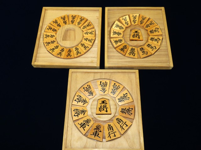 この作品は、丸山昭斎師の遊び心が作らせた品。、思わず微笑んでしまいます。1組40枚、ぴったり収まります。3玉にも対応いたします。現代サイズの大振り駒ですとややきつい感じでしたが標準サイズでしたらピッタリでした。