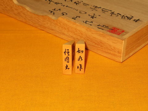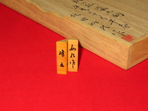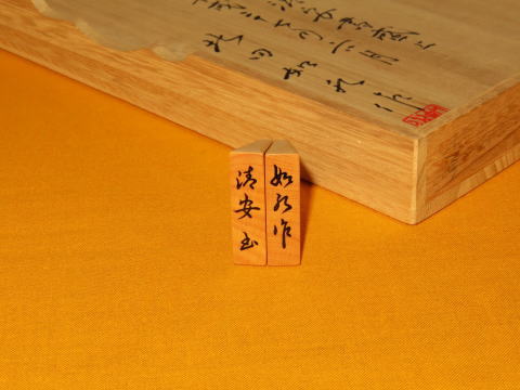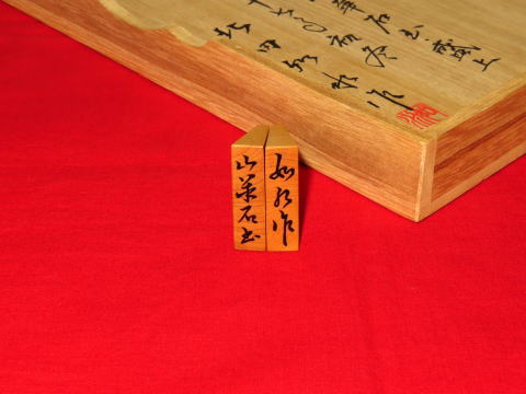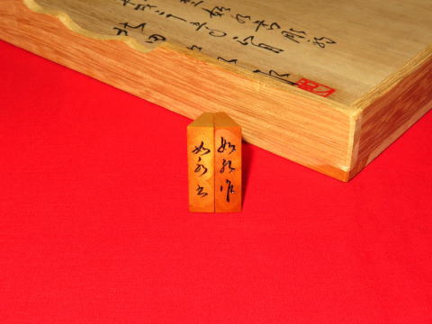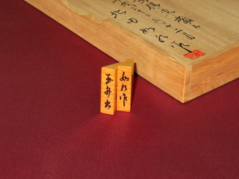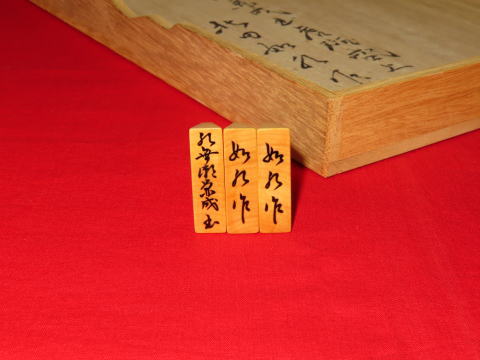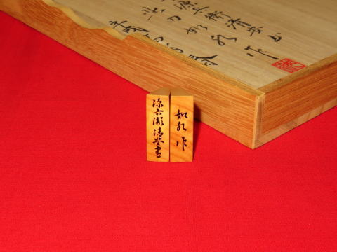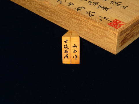 一聖作義之(北田如水書)薩摩黄楊柾目杢混彫(M116)