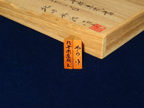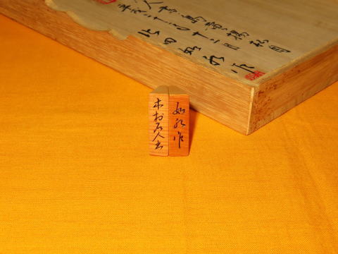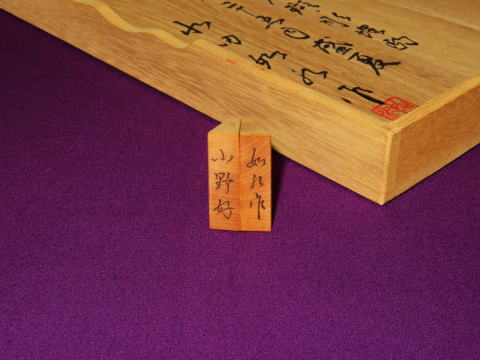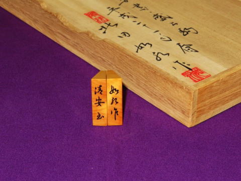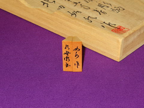 「玉将」の裏面に「如水書」と、北田先生が盛り上げた旨の漆書きがございます。