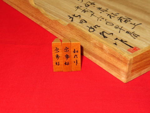 影水作の使い込んだ彫駒(「水無瀬」)に北田如水が盛り上げた、森田先生の研究用の習作です。