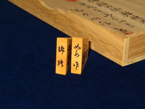 森田先生は実は北田如水師に師事、あくまで趣味としてですが、駒の制作も致しておりました。号は師の「如水」に倣って「如史」としておりました。師の作品は生前には発表されることはなく、私も没後初めて拝見いたしました。先生の温和な性格そのままの味のある作品です。非売品。