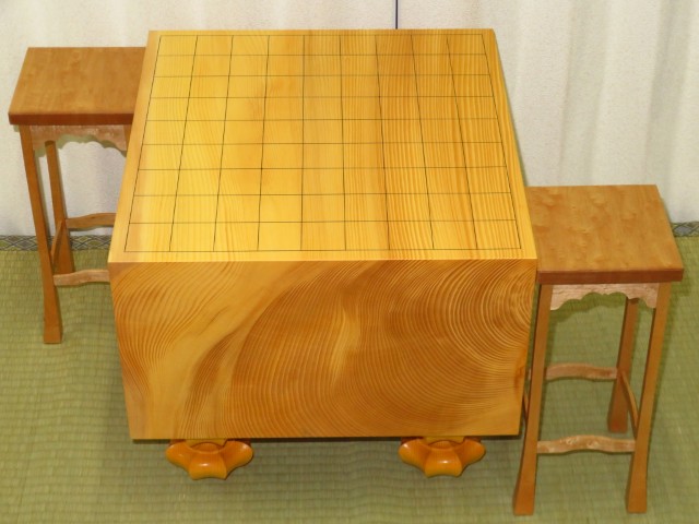 駒台は高橋徹男作楓(かえで)鳥眼杢(バーズアイ)矢倉(四本脚)。御覧の通り非常に良い品です。こちらももちろん新品です。